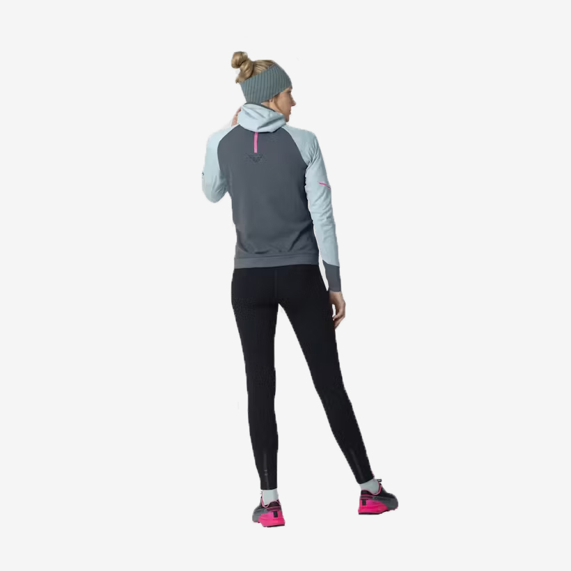 Alpine Long Sleeve Shirt za ženske je popoln kos oblačila za tekaške podvige v hladnejšem vremenu. Majica združuje visoko funkcionalnost, udobje in tehnološko napredne materiale, zaradi katerih je idealna spremljevalka na poteh, tudi v neugodnih vremenskih pogojih. Njen športni, telesu prilegajoč kroj omogoča nemoteno gibanje, medtem ko tehnične lastnosti poskrbijo za suhost, toploto in zračnost.