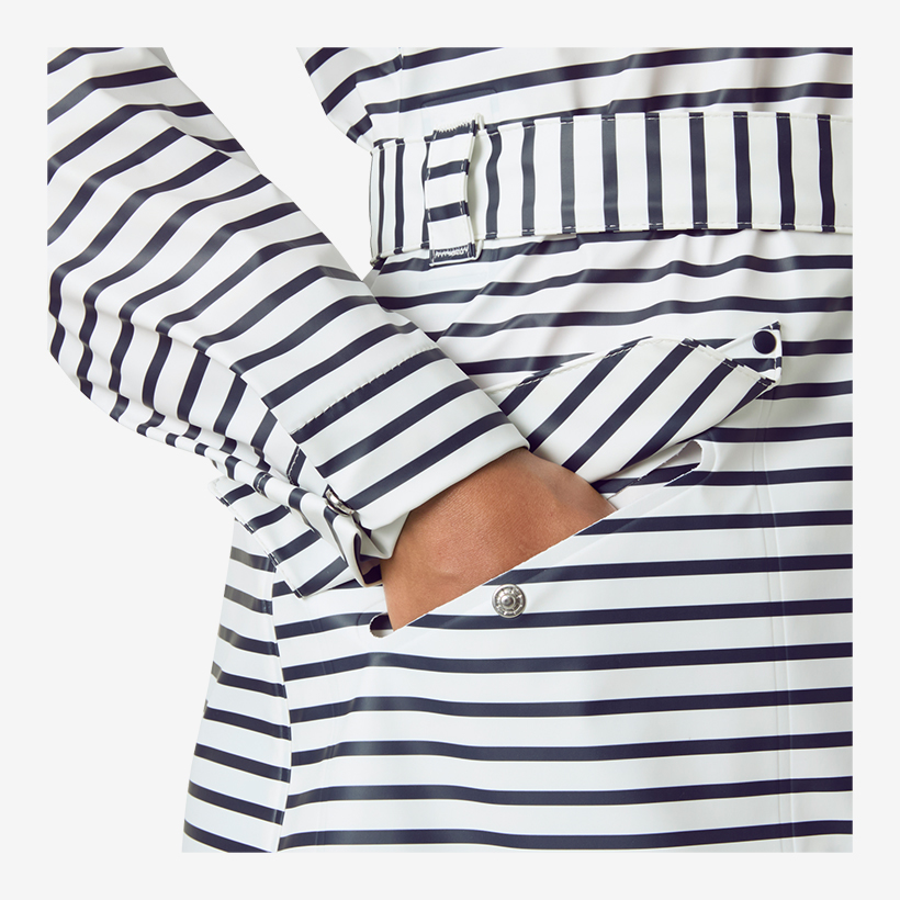 Ženski dežni plašč združuje brezčasen skandinavski slog in sodobno zaščito pred dežjem. Navdihnjen z ikoničnim ribiškim plaščem Helly Hansen iz 50. let prejšnjega stoletja prinaša eleganten videz, popolno vodoodbojnost in izjemne detajle za vsakodnevno nošenje v mestu ali na obali.