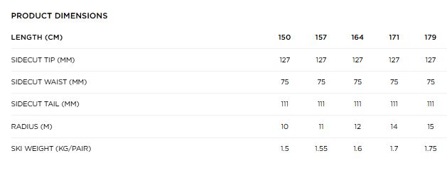 - TIP ROCKER – lažji in natančnejši začetek zavoja: Rahlo dvignjen sprednji del (tip rocker) omogoča lažje in bolj intuitivno vodenje smuči v zavoj, medtem ko klasičen camber po celotni dolžini zagotavlja odličen oprijem in prenos moči na trdo podlago.