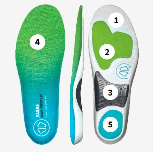 Dinamika in blaženje sta glavni prednosti vložkov za čevlje Max Protect. Zahvaljujoč tehnologiji Podiane®I+ , ki absorbira do 90 % energije udarca, vložki ščitijo vaše sklepe med aktivnostjo. Poseben material pod sklepi prstov izboljša odboj. Fleksibilna podpora stopalnega loka (TPU Flex) zagotavlja boljšo stabilnost, pomaga pri samozavestnejšem gibanju in nadzoruje pronacijo. Zračen material zagotavlja odvajanje vlage. Gel blazinica v peti prinaša opazno udobje. Vložki Sidas ACTIV' SLIM so zaradi debeline 3 mm primerni za notranje in druge športne čevlje z manjšim notranjim prostorom.